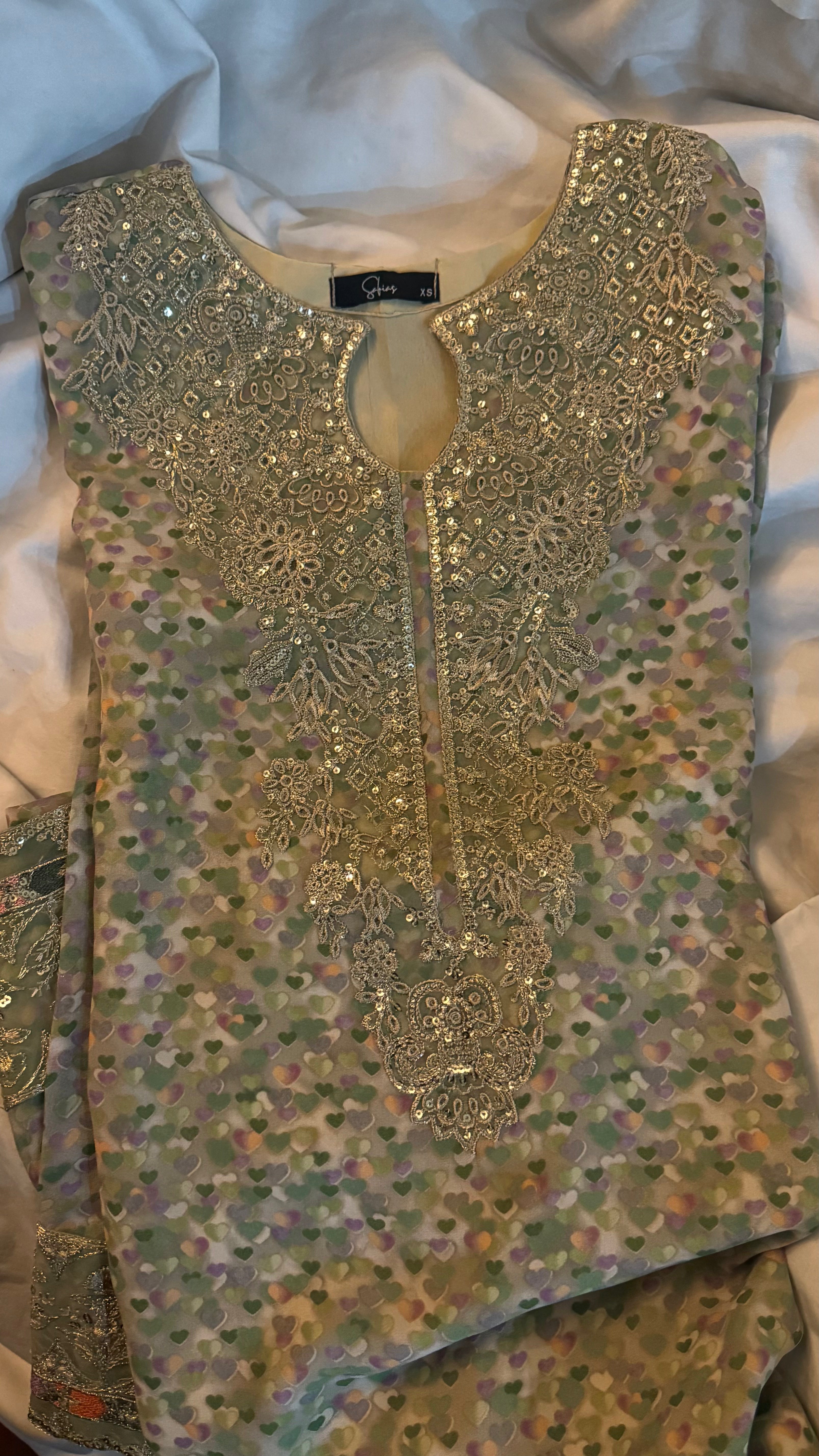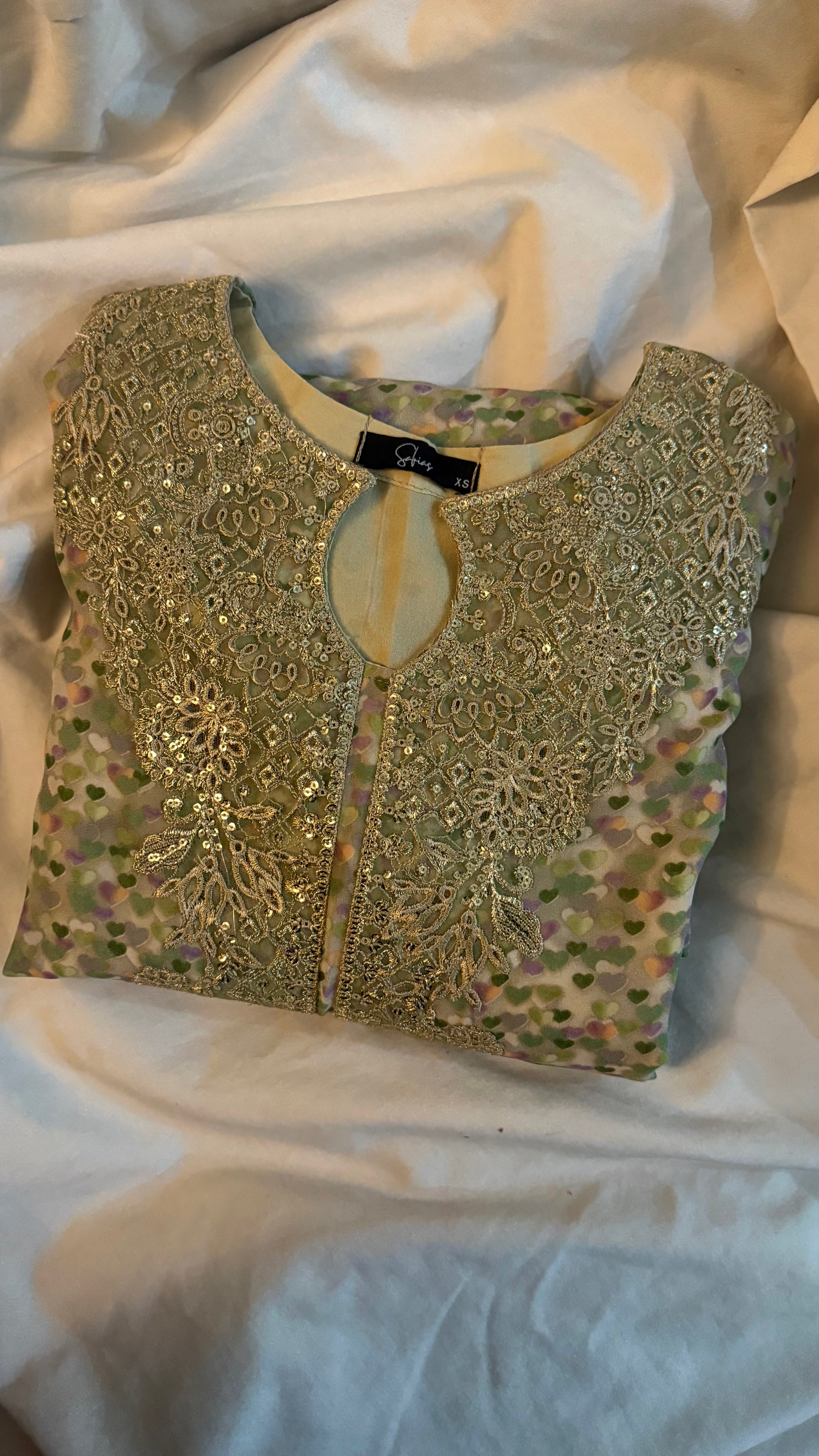 - Two-piece set: chiffon shirt & silk shalwar